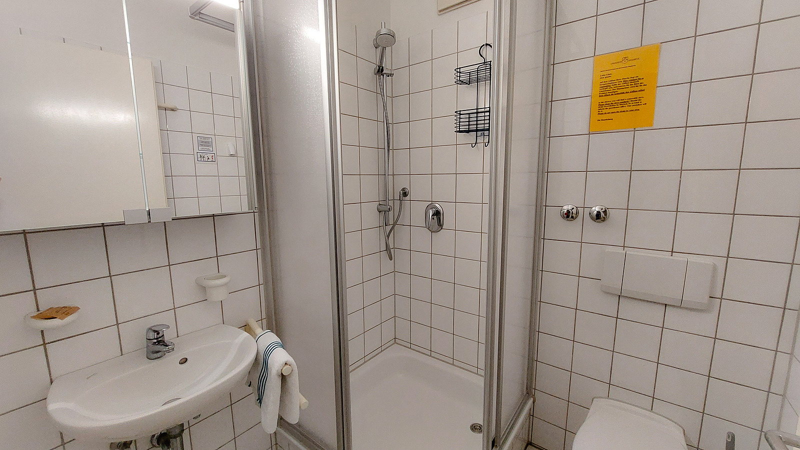 All apartments are equipped with toilet and shower, cooking facilities, internet access, telephone and TV. Cutlery, bed linen and towels are provided by the Guest House. The apartments are cleaned weekly by our cleaning staff. The laundry room in the basement is equipped with a washing machine, a dryer and laundry racks for shared use.