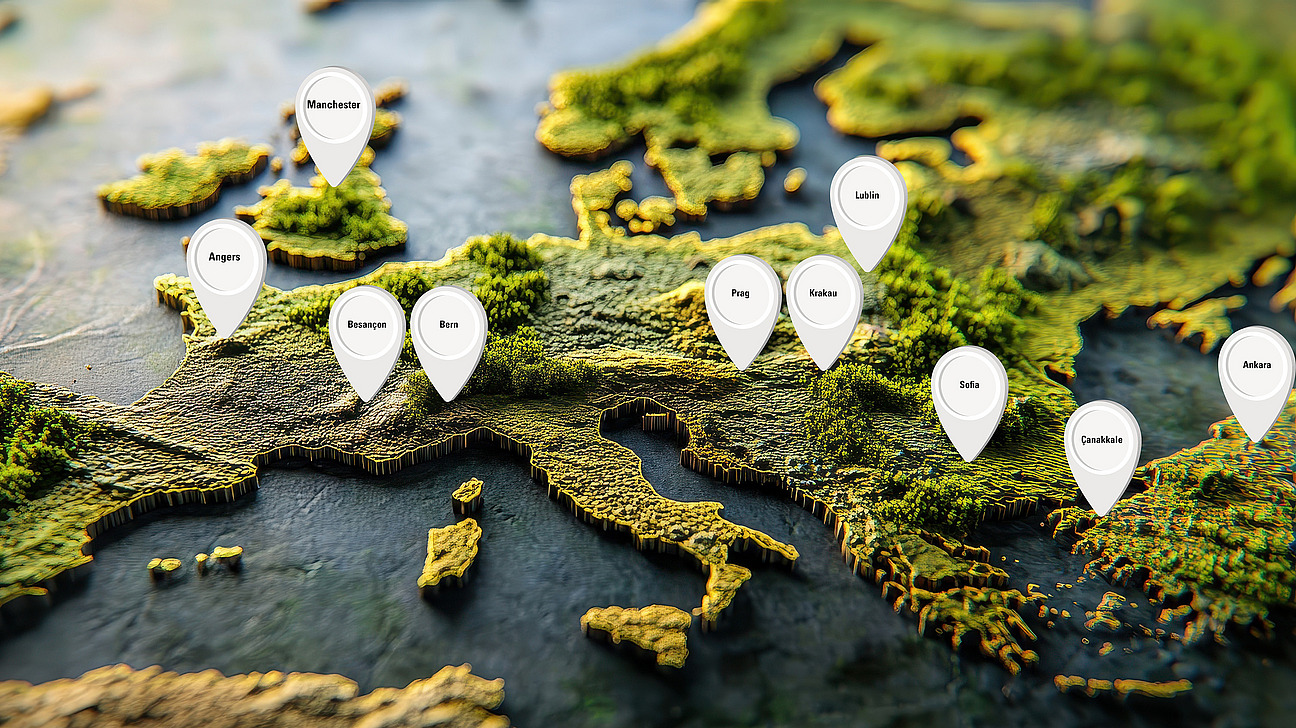 Bern (CH), Sofia (BG), Mancheser (UK) sowie Ankara und Çanakkale (TK) an.