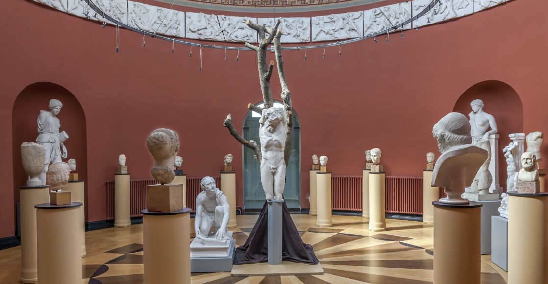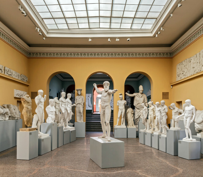 Heute ist hier die Original-Sammlung des akademischen Kunstmuseums zu sehen. Die Sammlung umfasst vier große Gipsabgüsse, die in Bögen in der Wand eingelassen sind. Diese Abgüsse stellen den Kassler Apoll(on) (links neben dem Eingang) sowie drei Amazonen dar. An der Wand unter der Decke sind die Gipsabgüsse des Friesens [6] des Apollontempels vom Bassai angebracht. Außerdem sind Attische Grabreliefs aus dem 4. Jahrhundert v. Chr., Doppelhermen [7] sowie mehrere Marmorporträts ausgestellt. Zwei der Marmorporträts stellen die ägyptische Königin Arsinoe II. und die Gattin des Augustus Livia dar. [8]