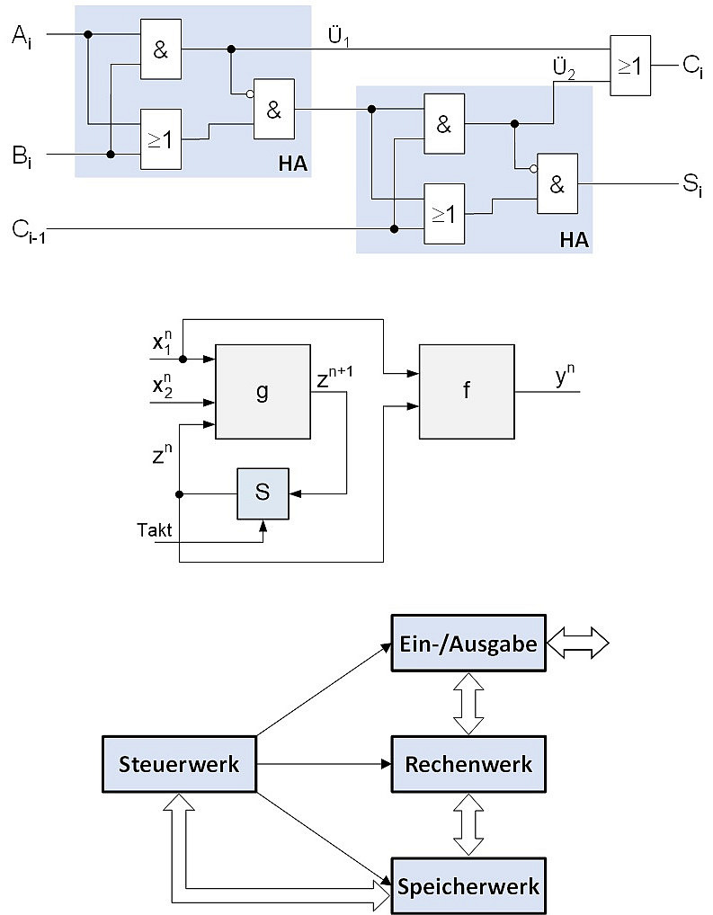 Die Grundlagenveranstaltung gibt eine Einführung in die digitale Informationsverarbeitung, insbesondere in die Grundlagen der Digitaltechnik und der Rechnerarchitekturen. Dies erfolgt ausgehend von der Schaltalgebra und der Gatterebene über Schaltnetze, Flip-Flops und Schaltwerke mit typischen Grundschaltungen und Entwurfsverfahren bis hin zu Mikroprozessoren und einfacher Assemblerprogrammierung. Ziel ist es, die Studierenden mit den elementaren Entwurfsverfahren digitaler Systeme auf den verschiedenen Abstraktionsebenen vertraut zu machen und ein Verständnis für den Aufbau und die Funktionsweise von digitalen Systemen und Mikroprozessoren zu vermitteln.
