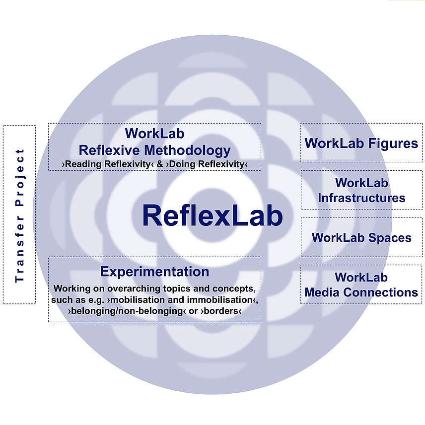 Das ReflexLab bildet im SFB den zentralen Ort der gemeinsamen interdisziplinären Forschung. Dazu gehören Auseinandersetzungen mit übergreifenden methodologischen und konzeptionellen Fragen ebenso wie die Bearbeitung thematischer Überschneidungen zwischen den Teilprojekten und eine Analyse dessen, was Reflexivität in den einzelnen Teilprojekten bedeuten kann und sollte. Das Reflexivitätslabor ist zugleich der zentrale Ort im SFB für die Entwicklung einer innovativen Methodologie reflexiver Migrationsforschung und einer reflexiven Theorie der Produktion von Migration.